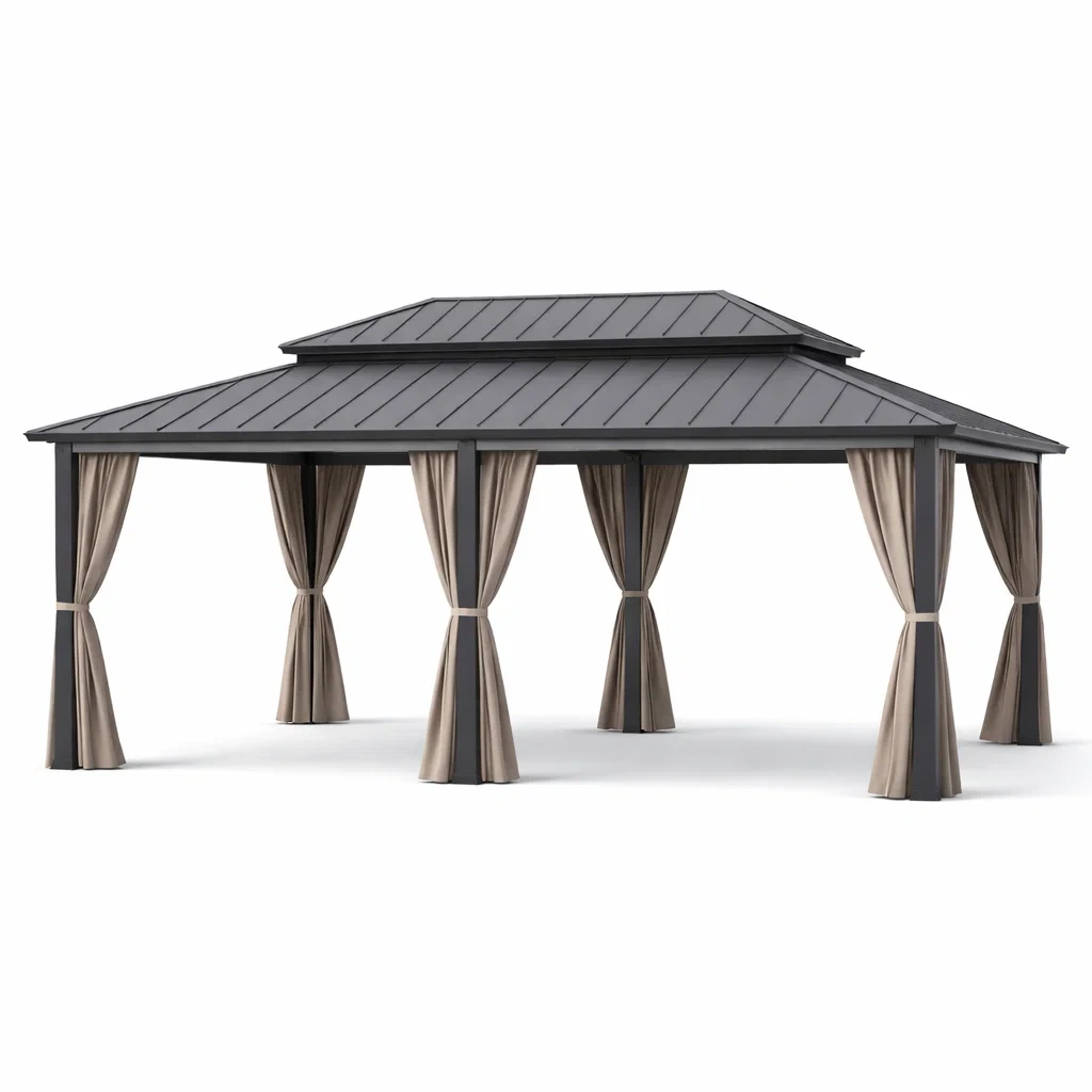 Pavillon en aluminium avec toit en acier galvanisé et rideaux en polyester